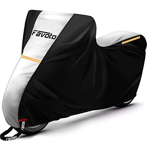 Favoto Funda para Moto Cubierta de Motocicleta 210D Impermeable, Protectora a Prueba de Sol Lluvia Polvo Viento Nieve Excremento de Pájaro al Aire Libre, 245x105x125cm Plata+Negro