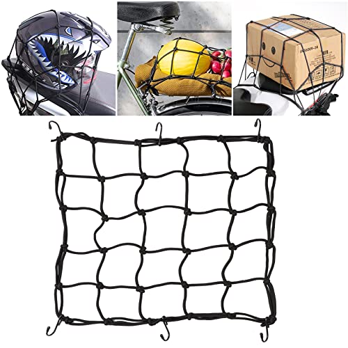 Red de Equipaje Elástica Moto, 40 x 40cm Motocicleta Elasticos Transporte Red Elástica de Carga para Bicicleta Moto Cuerda Equipaje Portaequipajes Trasero Sujetar Cascos, Negro