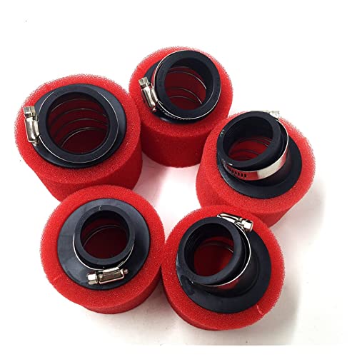 QAZAKY Universal 42mm Limpiador de filtro de aire de rendimiento de doble espuma en ángulo rojo 125cc 150cc 200cc 250cc GY6 Motocicleta ATV Scooter Quad Go Kart Ciclomotor Yamaha PZ24 41mm 43mm 1.65"