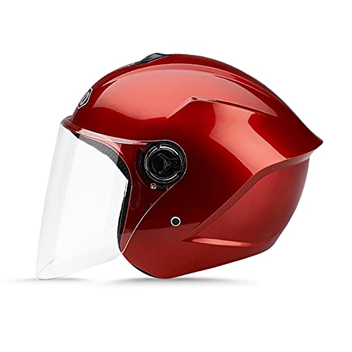 LIONCIANO Cascos De Motocicleta para Hombres y Mujeres, Cascos De Ciclomotor con Viseras.El Cabezal Anticolisión Protege La Seguridad Vial De Los Usuarios(Rojo Rubí)