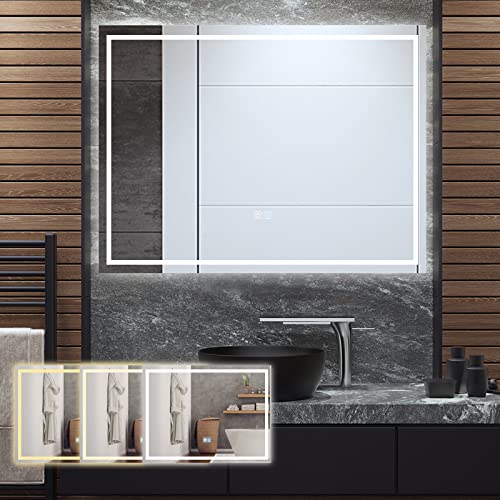 RELAX4LIFE Espejo de Baño LED con Desempañamiento Antivaho y Botón Táctil, Espejo Rectangular con 3 Colores LED y Luz Ajustable Delantera y Trasera, Espejo de Pared de Baño Inteligente, 80x60cm