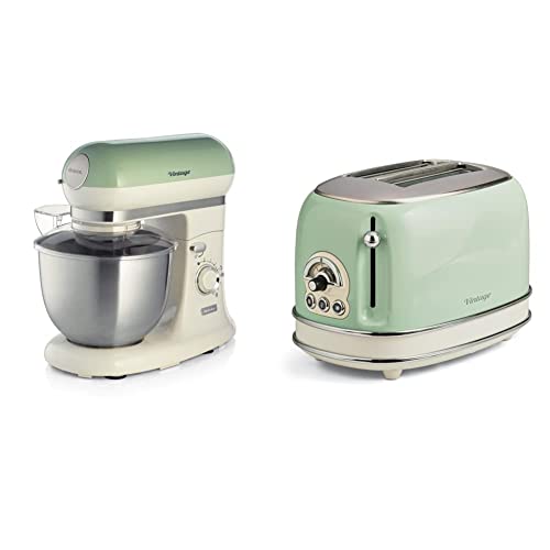 Ariete 1588/04 Robot de Cocina, Color Verde + 155/14 Tostador 2 ranuras anchas, vintage, 6 posiciones