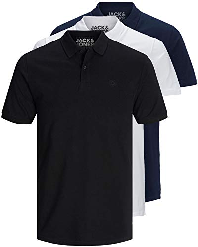JACK & JONES Pack de 3 polos para hombre, corte ajustado, manga corta, negro, blanco, azul, gris, XS, S, M, L, XL, XXL, 12171776, Pack de 3 colores Mix 3, L