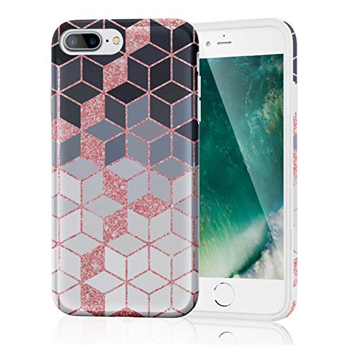 ZQ-Link Funda iPhone 7 Plus,Funda iPhone 8 Plus,Silicona Marble Case Cover - Carcasa de [TPU] para móvil y diseño de geometría en [Negro Rosa Blanco]