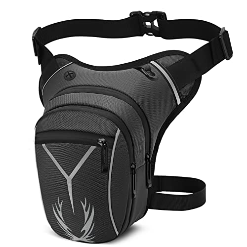 WACCET Bolsa Pierna Moto para Hombres y Mujeres, Bolsa de Pierna Tactica Impermeable Riñoneras Hombre Pierna Multifunción Riñonera Pierna Moto para Ciclismo, Senderismo, Pesca, Escalada. (Gris)