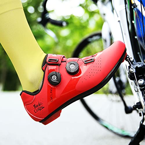 Ciclismo MTB Zapatos Blanco Y Rojo Hombres Red Sports Road Dirt Bike Speed Sneaker Sneaker Racing Mujeres Bicicleta,43, Mountain Soles