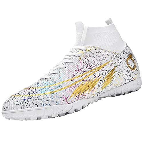 Unitysow Zapatos de Fútbol Hombres Aire Libre Spike Zapatillas de Deporte Atletismo Profesionales Training Botas de Fútbol,Blanco,39 EU