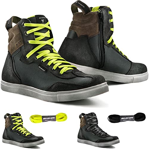 SHIMA Blake Zapatos de Motocicleta para Hombres | Cuero, Transpirables, Zapatos de calle reforzados con cremallera lateral, Soporte de tobillo, Suela antideslizante, Almohadilla de cambio (Marrón, 44)