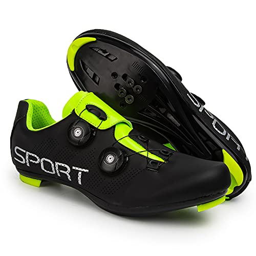 Zapatillas de ciclismo Zapatillas de ciclismo de carretera MTB para hombre y mujer Zapatillas con pedal de bloqueo para pelotón y zapatillas de ciclismo para interior y exterior,Green-4UK=(235mm)=37EU