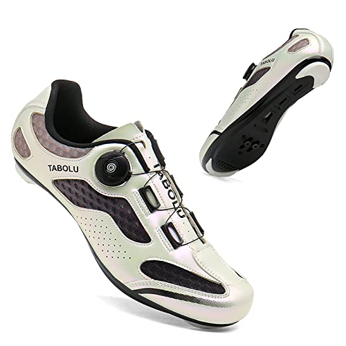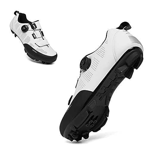 Zapatillas de Ciclismo Para Hombre, Zapatillas de Bicicleta de Carretera Compatibles con Peloton SPD, Zapatillas de Carreras Para Hombre/mujer, Zapatillas de Montar Para Mtb Al Aire Libre,WhiteB-36