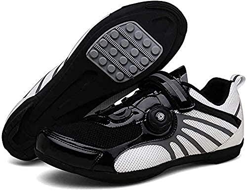 Zapatillas de Ciclismo Profesionales Zapatillas de Ciclismo de Carretera MTB Zapatillas de Bicicleta de MontañA Antideslizantes con Autobloqueo Tacos Planos Fondo Blanco y Negro 40