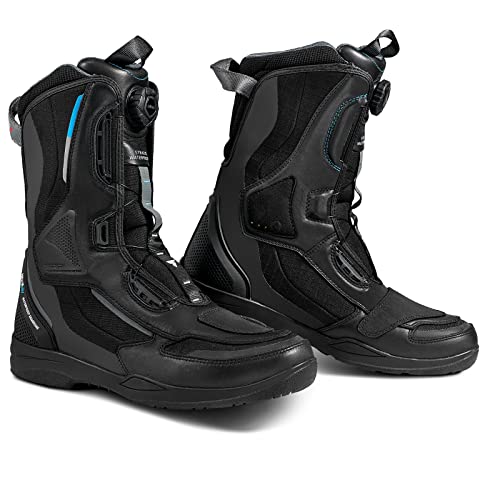 SHIMA STRATO Botas Moto Hombre, Transpirables, Reforzadas, Ligeras Botas de Moto Adventure Touring con Sistema de Cierre Rápido ATOP, Protección de Tobillos, Suela Antideslizante Negro, 43 eu