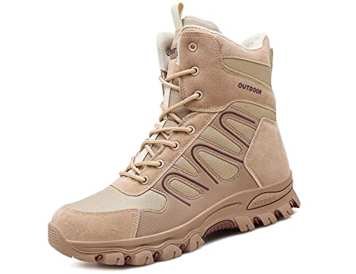 IYVW A03 Botas De Combate De CañA Alta para Hombre, Botas De Cuero para Senderismo Al Aire Libre Amarillo Desierto 39 EU