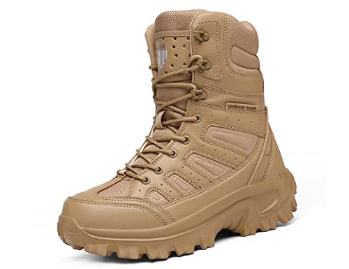 IYVW KKK Q88 Botas Tácticas Militares Impermeables para Hombre Combate Ejército Army Jungle Boots Side Zip Zapatillas de Deporte Amarillo Desierto 42 EU