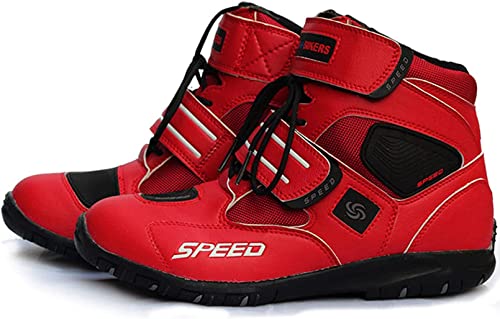 Ou Gecai Botas de Motocicleta de Mujer, Zapatos de Carreras de Motocicletas de Cuero para Hombres Bota Corta de Motero para Bicicleta Todoterreno de Motocross 2023,43,Red