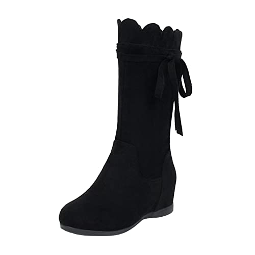 Dasongff Botas Plataforma Tacón Mediados Pantorrilla Mujer Botas Mujer Invierno Barato Botas De Tacón De Aguja Botas Planas Mujeres Bota Media Mollet Chukka Botines Botines Tacón Baratos, Negro ,