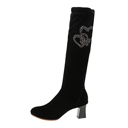 Dasongff Botas de mujer Altas Baratas - Botas de vaquero para mujer Botas altas para mujer Tacón Botas altas Mujeres Botas Moto Cross Botas Baratas Botines Tacón Negro, e, 37 EU