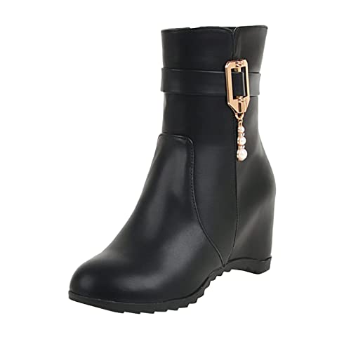 Dasongff Señoras Color Sólido Cuero Cara Perla Hebilla Cinturón Cremallera Moda Zapatillas elevadoras Interior Botas Mujer Barato, Le Noir, 42 EU