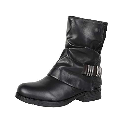 IF Moda Zapatos de Mujer Botas Botines Biker Hebillas Anfibios 337, G620 Negro, 36 EU
