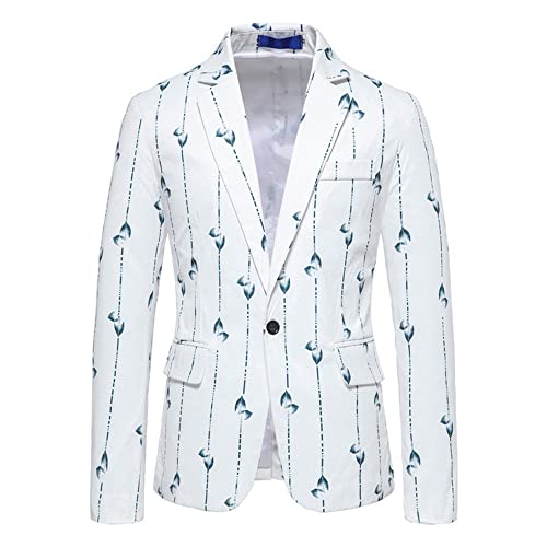 ALAIYO Trajes Hombre Estampado Primavera Otoño Traje Hombre Chaqueta Traje Casual Hombre Moda Urbana Slim Fit Blazer Chaqueta Hombre A-White1 L