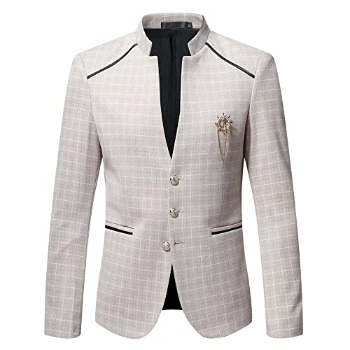 Ying Traje Chaqueta Hombre Retro Impresión Bolsillo Decoración Manga Larga Chaqueta Hombre Ajustado Cuello Pie Blazer Hombre Urbano Estilo Británico Color Sólido Escenario Ropa D-Khaki L