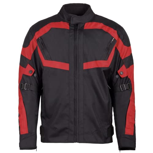 URBAN 5884 Chaqueta de Moto de Cordura para Hombre, Impermeable y Cortaviento, Chaqueta Moto Hombre 4 Estaciones con Forro Térmico Extraíble, Protecciones Homologadas CE, Negro/Rojo, 5XL