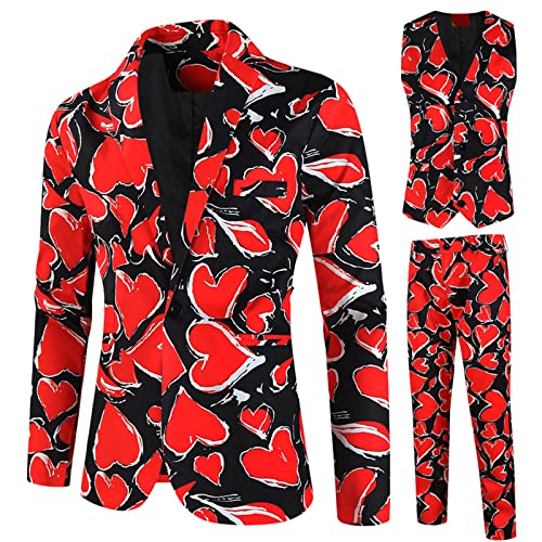 Trajes Hombre El Ganso Mens Valentines Day Printing Love Meeting Moda Casual Party Dress Up Traje Chaqueta Chaleco Pantalones Traje de Piezas Trajes Quad Hombre Rojo M