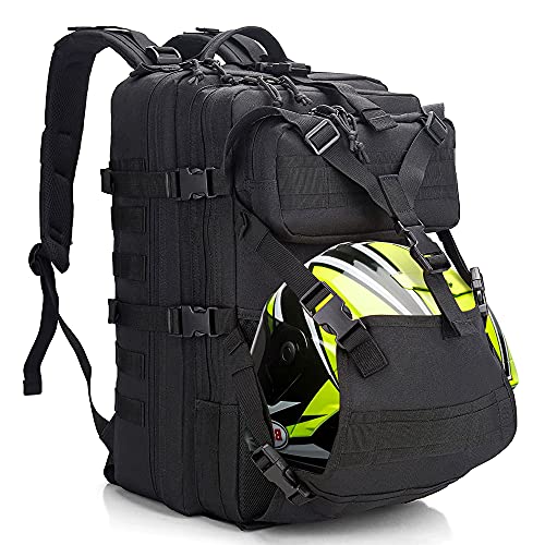 YOUNGOA Mochila Moto Hombre, Mochila Militar Tactica, Negra Impermeable Bolsa Casco Moto, Portátil Mochila Trekking para Supervivencia, Acampada Negro 45L