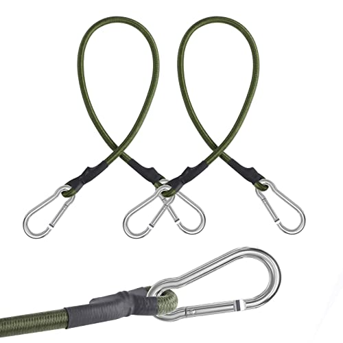 Paquete de 2 Cuerda Elástica con Mosqueton, 64 cm Pulpos Elasticos Tensores Elásticos Bungee Cord Resistente para Maletas Bicicletas Motos Camping (Verde Militar)